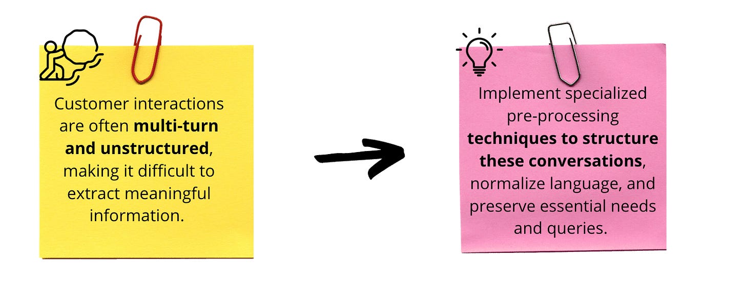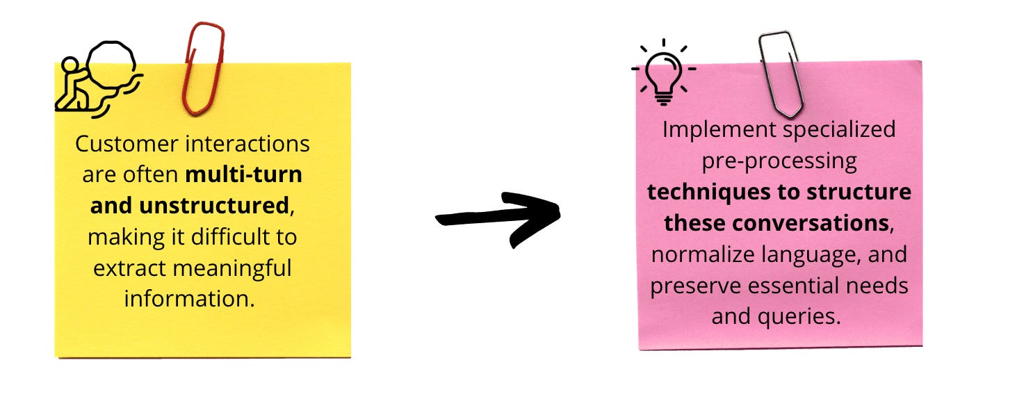 To address the challenges of unstructured data, we're developing a solution that automates the extraction and organization of knowledge from customer interactions. Creating such solution is natural and mimics the way you would go about onboarding a new employee.