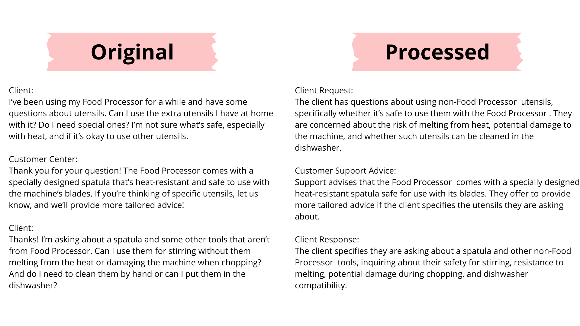 Unstructured and messy: Conversations with customers are dynamic and can vary widely in format and content, making it difficult to extract consistent and reliable information. E.g. some emails are straight to the point, and some are lengthy and provide a lot of details unnecessary for solving the problem. As emails are a multi-turn type of conversations, relevant information is scattered throughout the communication.